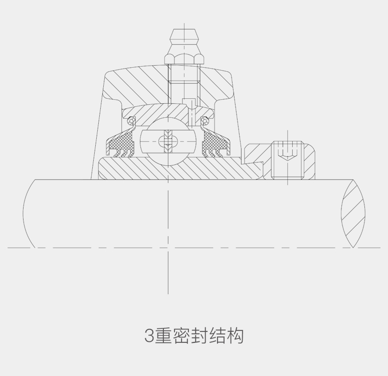 軸承外圈上的密封圈和內(nèi)圈上的擋圈形成迷宮式密封,可 有效防止塵埃、水等侵入軸承內(nèi)部。同時(shí)針對(duì)特別惡劣的場(chǎng)合,我們研發(fā)的三重密封圈的密封唇能以緊密貼合的緊迫力與軸承內(nèi)圈接觸,強(qiáng)力阻止外部塵埃、水等侵入軸承內(nèi)部,延長(zhǎng)軸承的使用壽命。